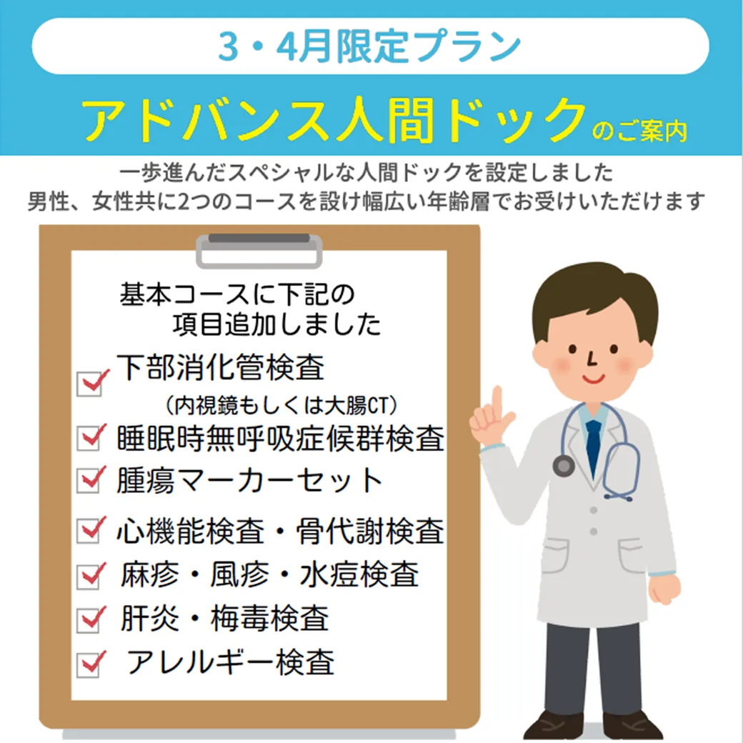 【3月4月限定プラン】アドバンス人間ドックのご案内
